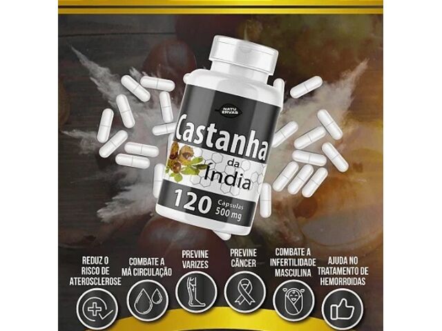 A Castanha da Índia Natuervas é um suplemento natural conhecido por seus benefícios à circulação sanguínea e saúde das pernas. Cada cápsula contém 500 mg de extrato concentrado, proporcionando ação eficaz no alívio de inchaços, varizes, sensação de peso e cansaço nas pernas.