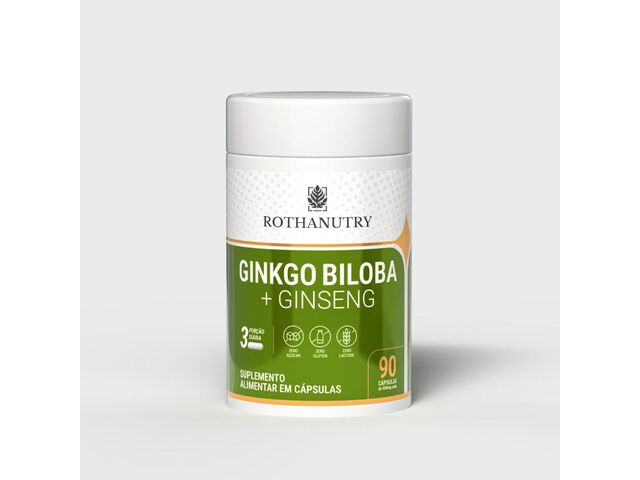 Ginkgo Biloba + Ginseng 90 Cápsulas RothaNutry | Foco, Memória | Suporte ao Desempenho Mental.