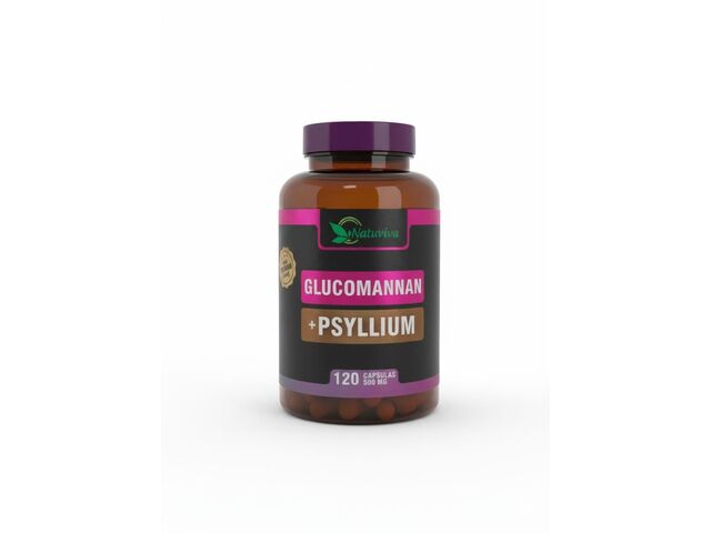 Glucomannan + Psyllium Natuviva | 120 Cápsulas 500mg: Controle do Apetite e Saúde Intestinal.